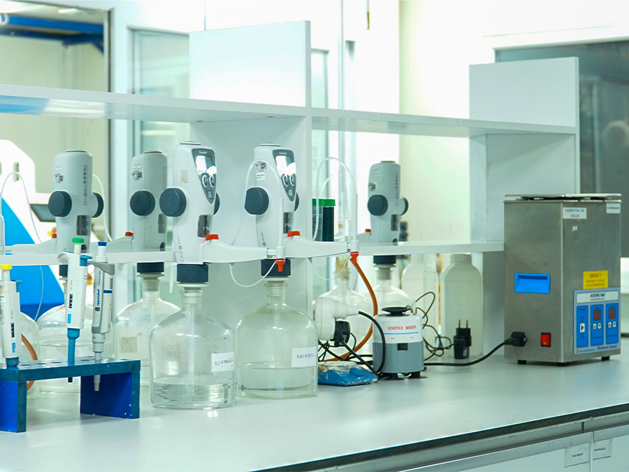 Kimyasal Laboratuvarda kullanılan HPLC, AAS ve UV-Vis Spektrometre cihazları, kaplama banyolarındaki organik bileşenlerin ve metal iyonlarının konsantrasyonlarını yüksek hassasiyetle belirlerken, NSS Test Cihazı ile ürün validasyonuna yönelik korozyon direnci ölçülmektedir.